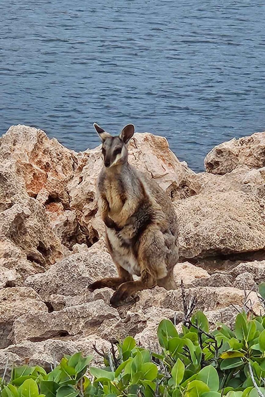 Wenn du keine Lust auf schweißtreibende Wanderungen bei 35 Grad hast – we feel you! – dann ist der Yardie Creek Trail perfekt. Er startet ganz entspannt auf einem Sandweg und führt dann über Felsen zu einem genialen Aussichtspunkt über die Schlucht. Unbedingt Ausschau halten nach den Black-footed Rock Wallabys – super süß! Für die rund einstündige Wanderung reichen feste Schuhe und ein bisschen Kondition, denke aber unbedingt an eine Kopfbedeckung. Früh morgens ist’s am angenehmsten.